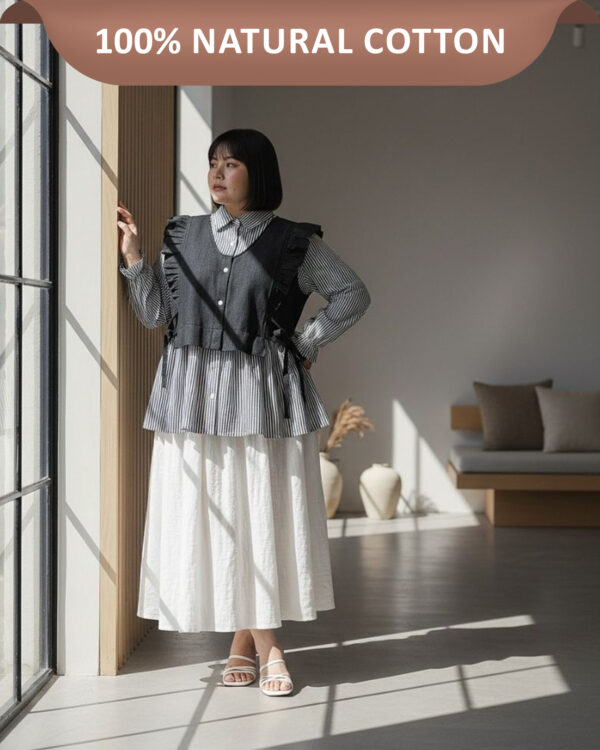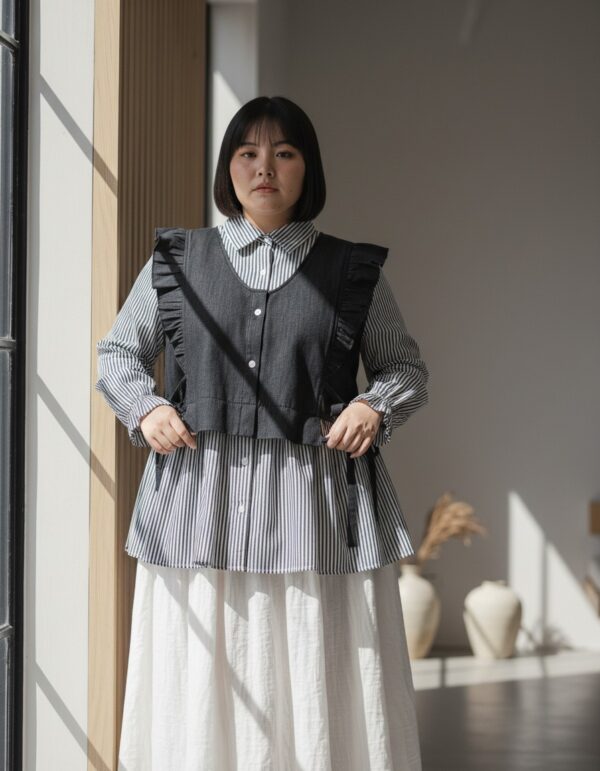 Marcia Blouse dirancang untuk kamu yang ingin tampil standout dan playful. Bahannya dari denim katun yang adem dan lembut di kulit, gak bikin gerah, nyaman dipakai seharian. Potongan ruffle dan tali adjustable-nya bantu bentuk siluet lebih ramping. Terasa ringan, terlihat manis, dan pastinya bikin kamu percaya diri dari pagi sampai sore.