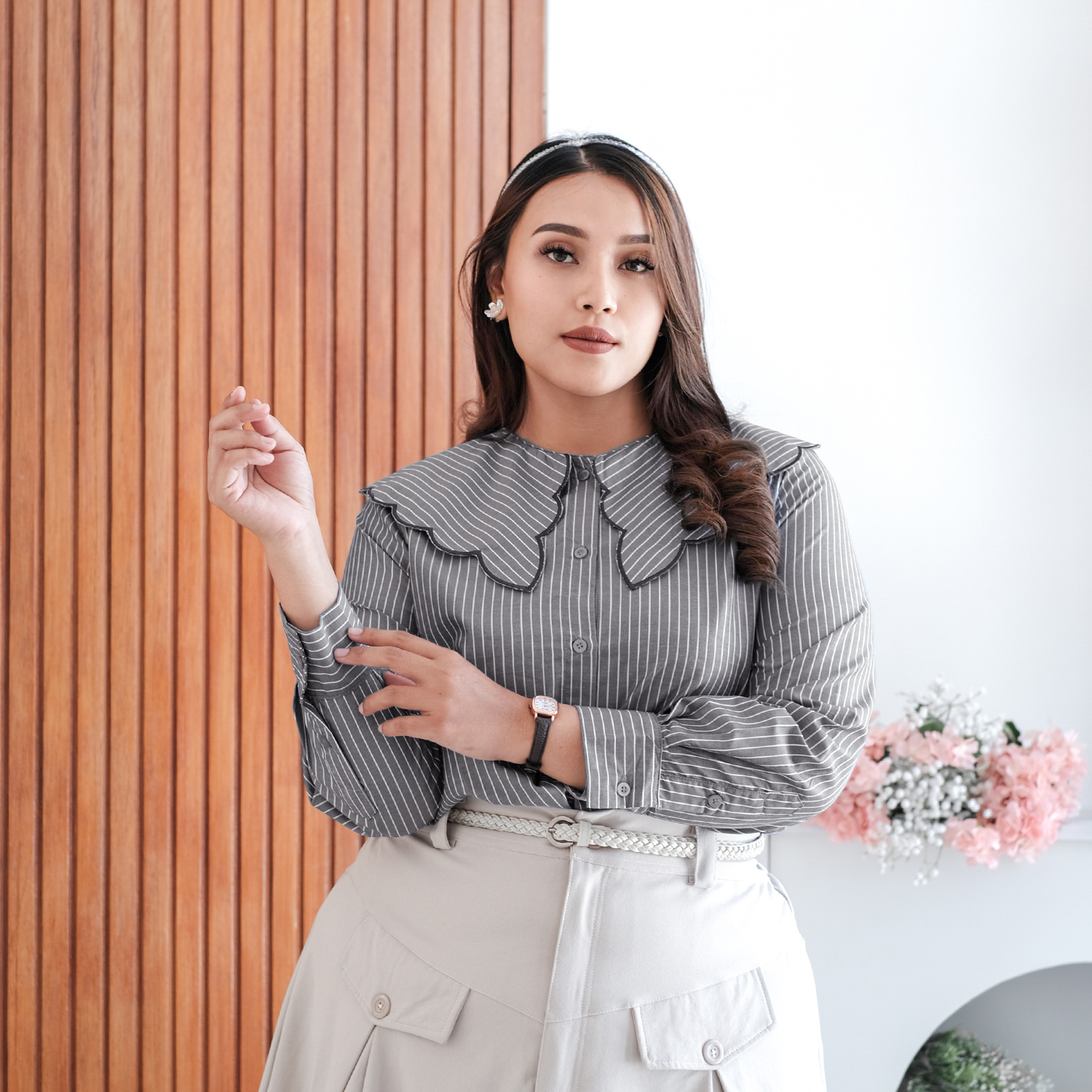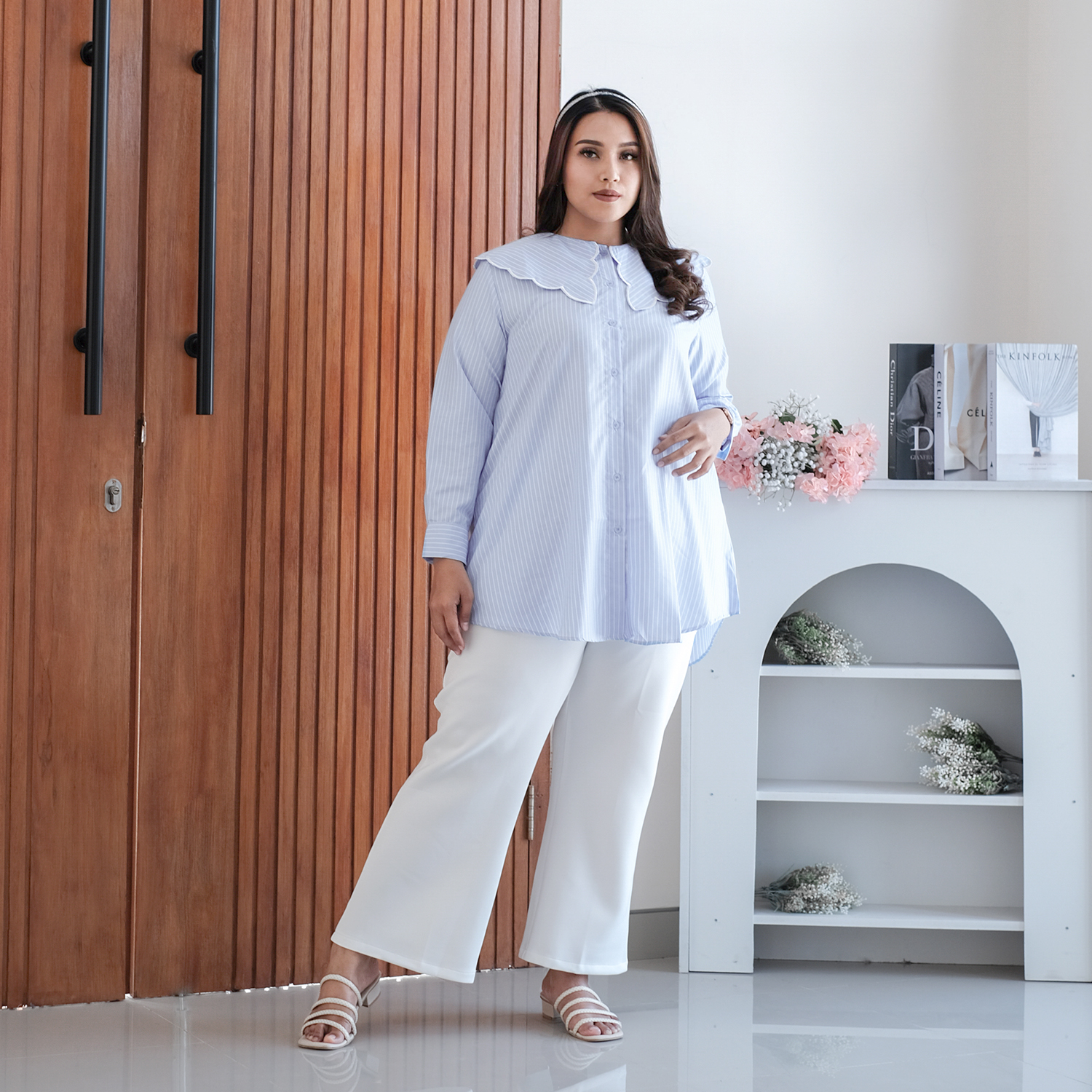 Finally, Serena Blouse is here! Kemeja modest dengan sentuhan feminin dan kerah bordir scallop yang manis, siap bikin kamu tampil chic dan elegan! Motif garis vertikal dari bahan bigicotton stripe nggak cuma stylish, tapi juga kasih ilusi slim look yang bikin percaya diri! Desain Serena Blouse yang lagi trending langsung jadi best seller di Bazaar Glam Local! Jangan sampai kehabisan, ya!