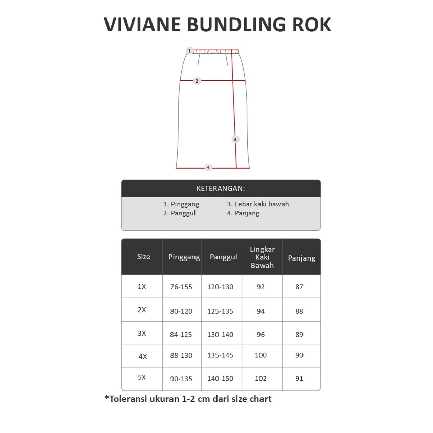 Size (Lingkar pinggang x Lingkar pinggul x Lingkar kaki bawah x Panjang rok)